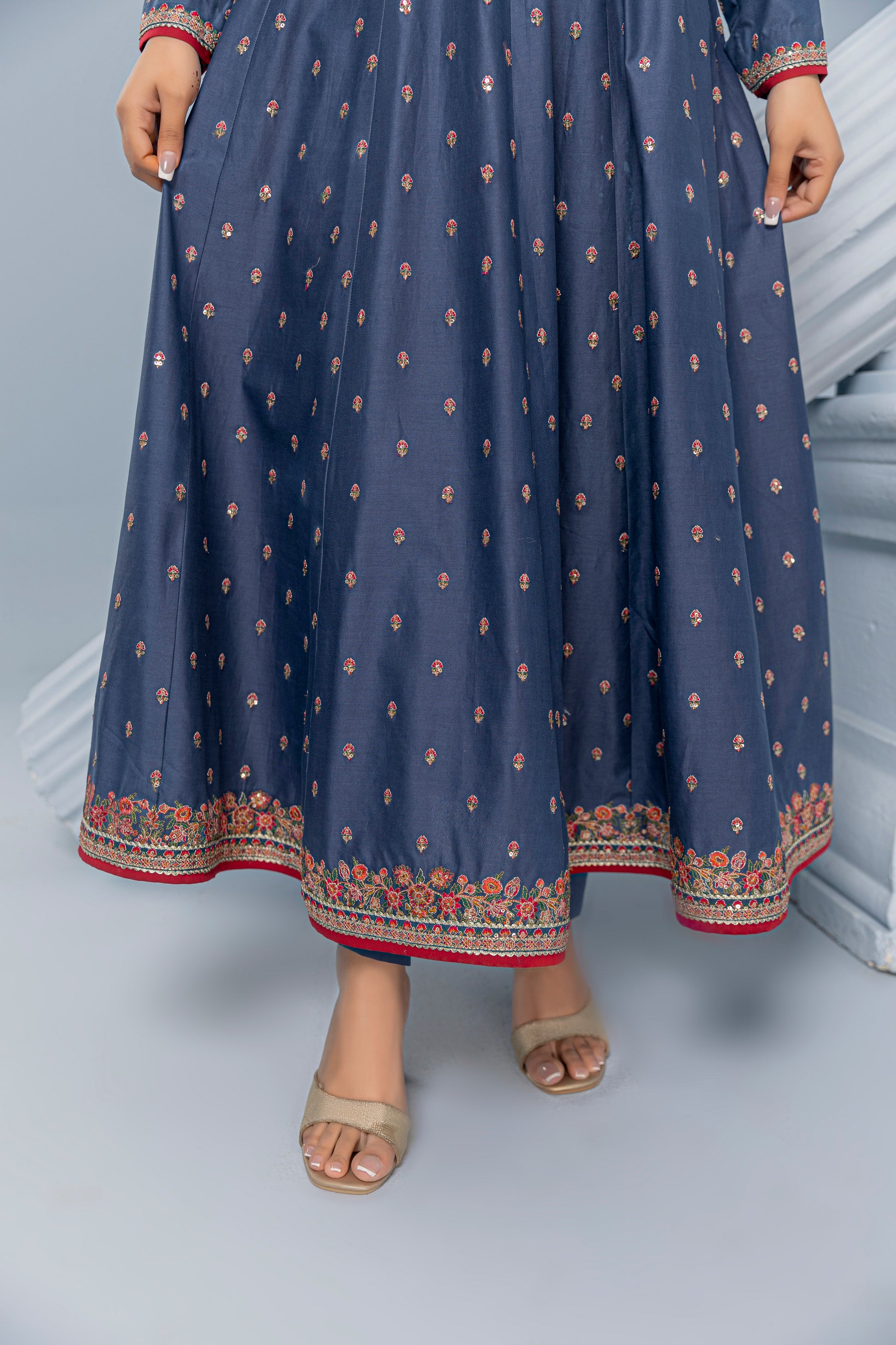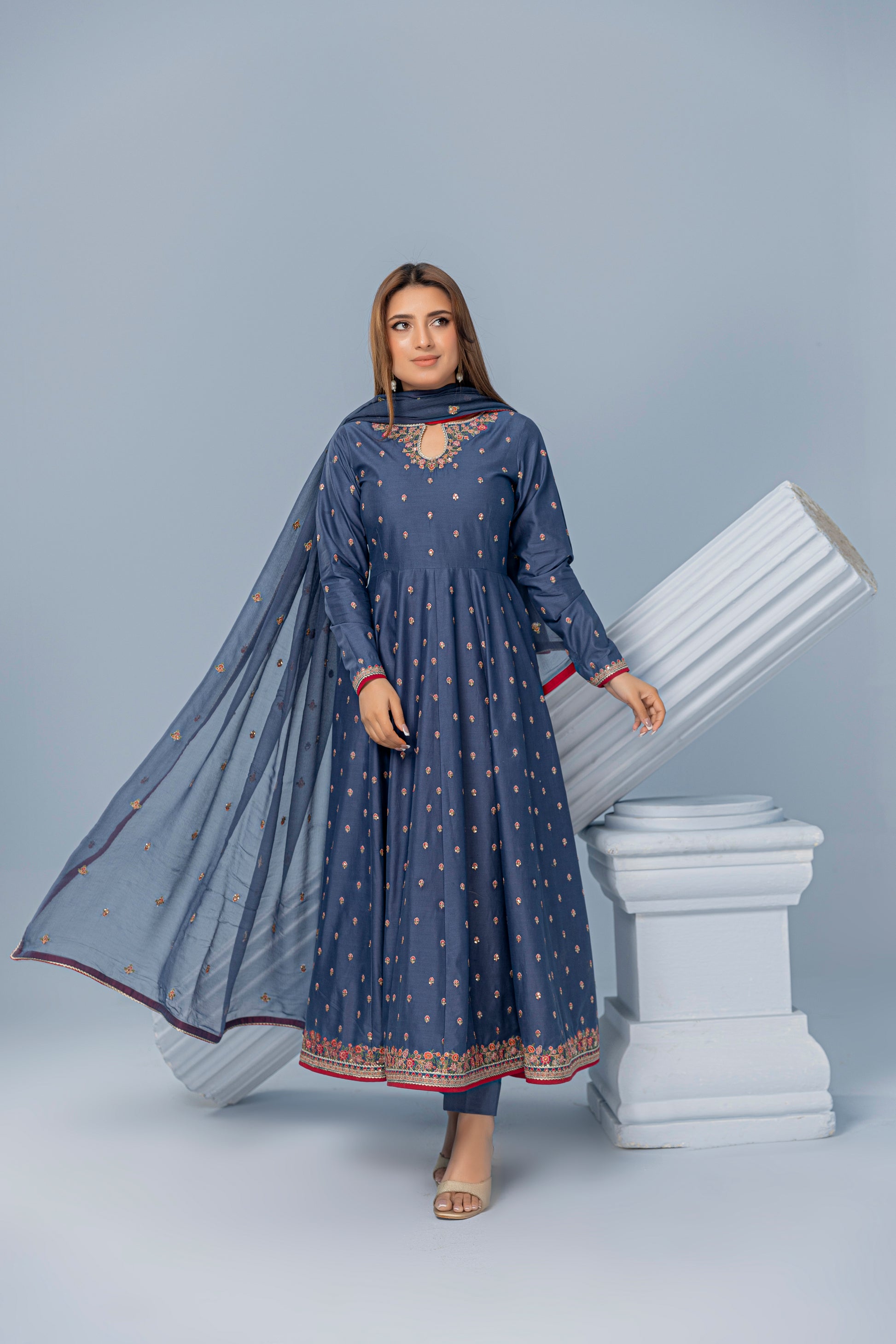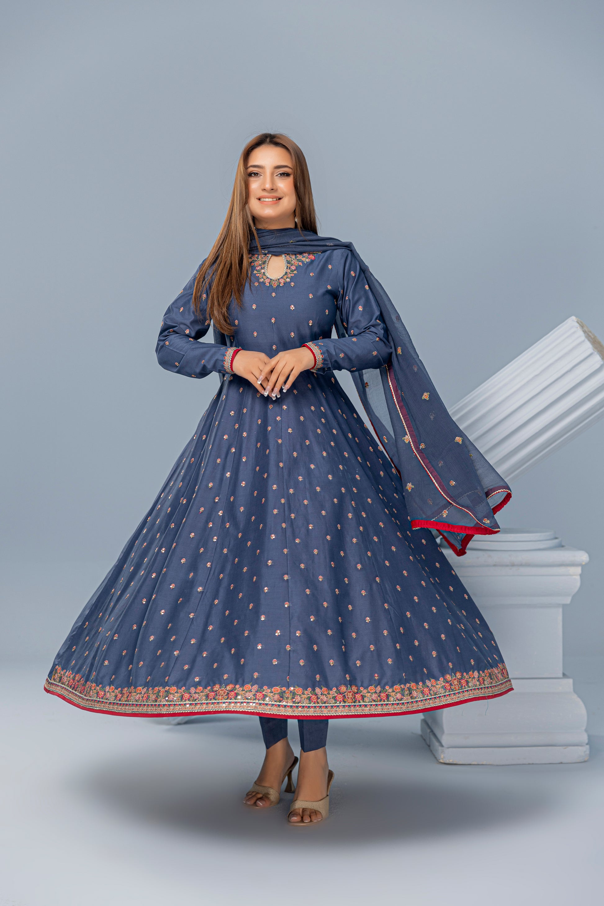 Bold yet graceful, Zimal in classic black is the epitome of timeless elegance. The embroidered shirt features intricate floral detailing with mirror accents, beautifully balanced with wide-leg lace-trimmed trousers. The printed chiffon dupatta adds a soft, flowing finish — perfect for festive evenings and chic daytime gatherings.